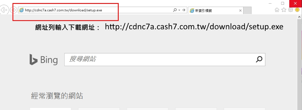 เปิดเบราว์เซอร์เพื่อดาวน์โหลดไฟล์การติดตั้งแถบ URL และป้อน: http://cdnc7a.cash7.com.tw/download/setup.exe