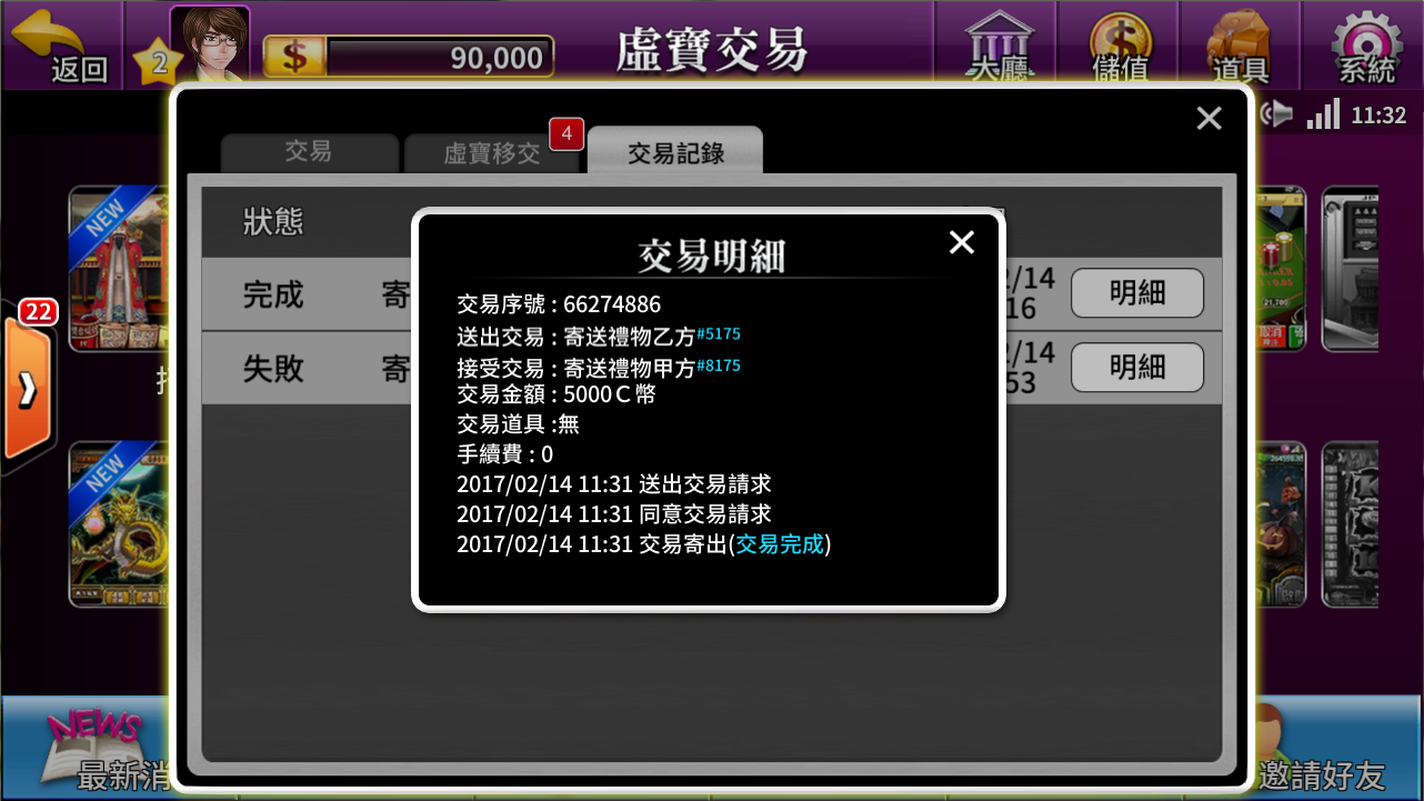 ผู้โอนและผู้รับจะต้องเป็นสมาชิกถาวรและทำการผูกเบอร์มือถือแล้ว ตัวละครระดับ 50